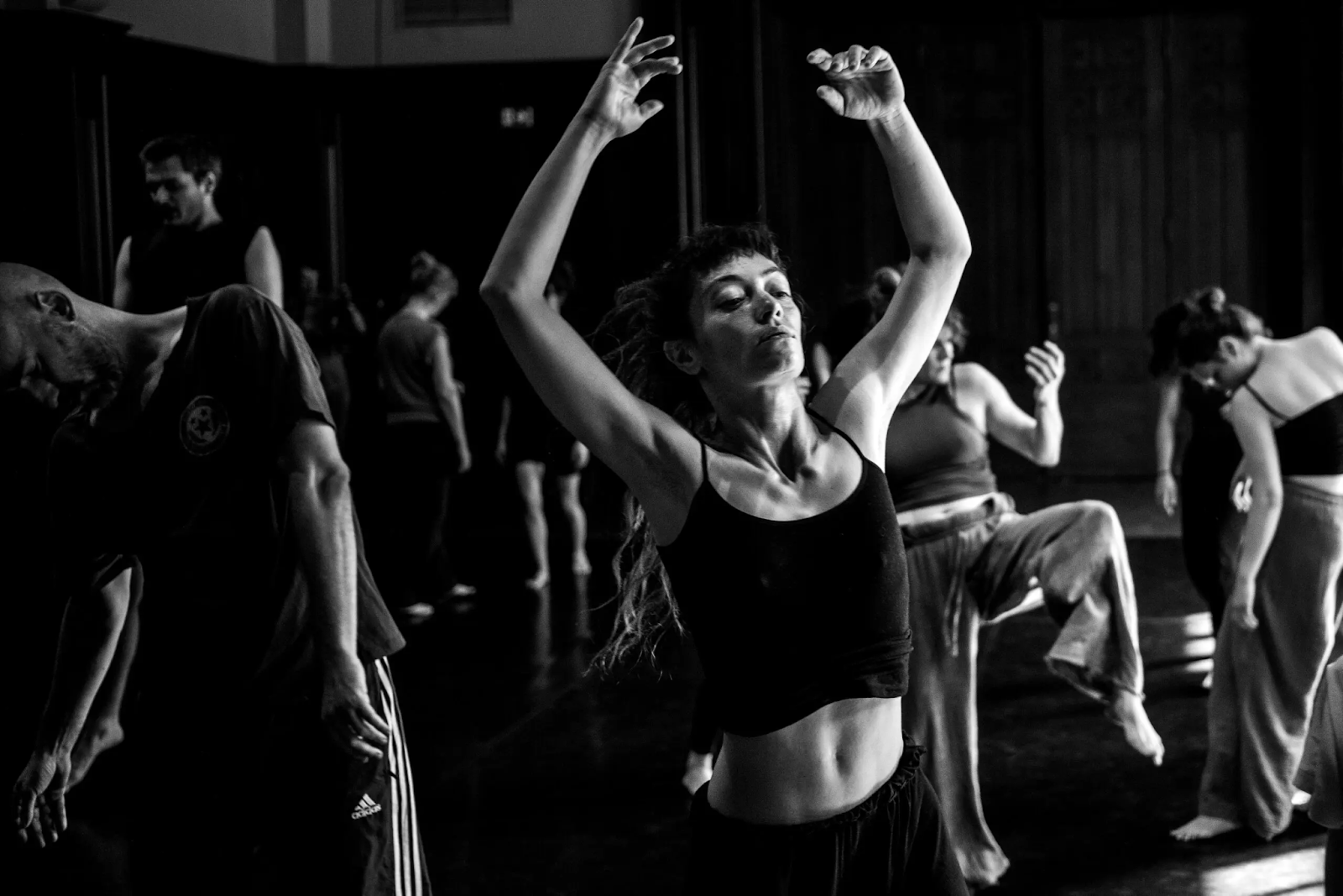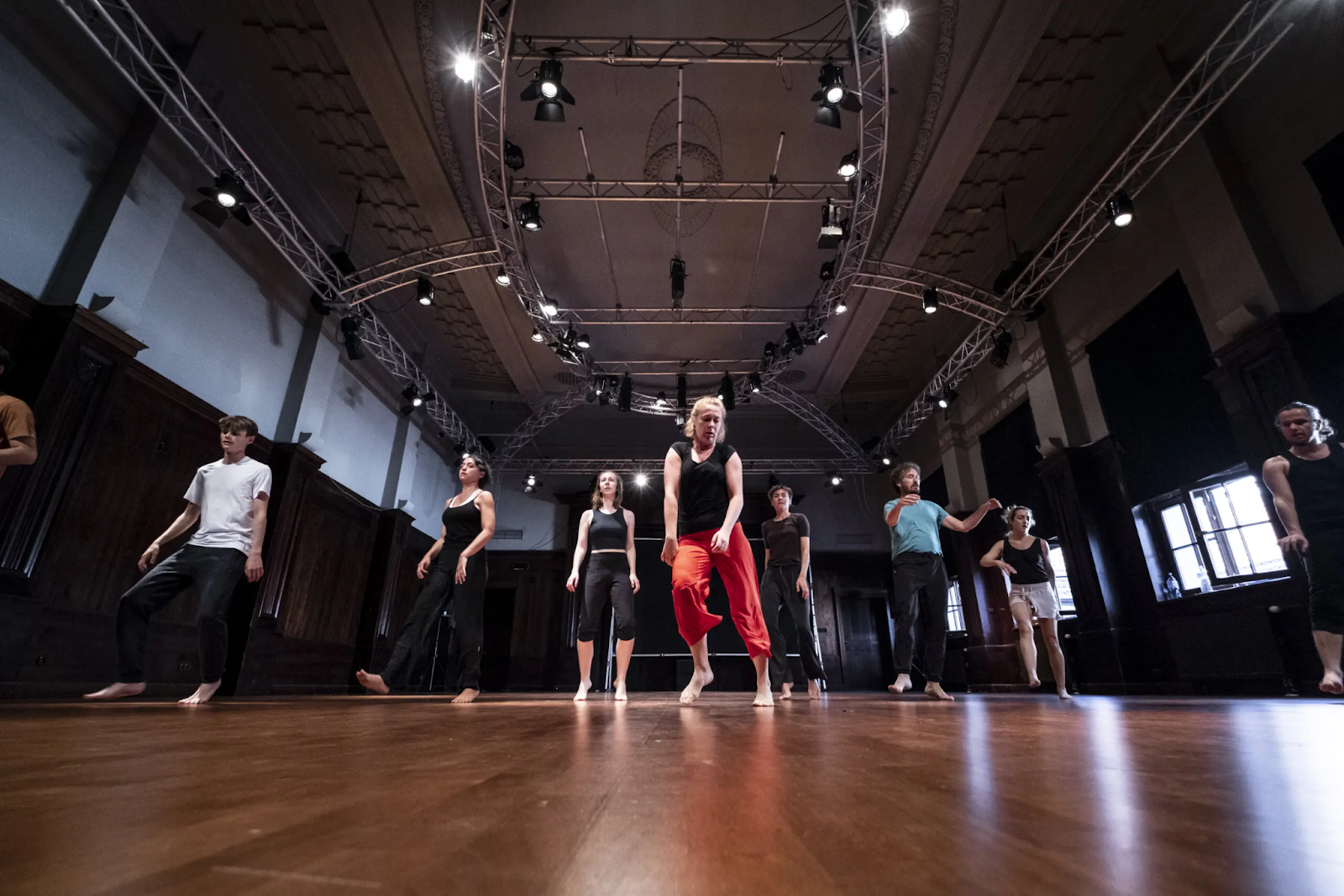 ZAR працює не за готовими сценаріями, а створює виставу як процес – через тілесні вправи, вокальні практики, пошук звучання, що об’єднує групу. Тут немає поділу на «акторів» і «глядачів» у звичному сенсі. У залі часто немає класичної сцени, а глядач перебуває в одному просторі з виконавцями – дихає з ними, чує те саме, що вони.
